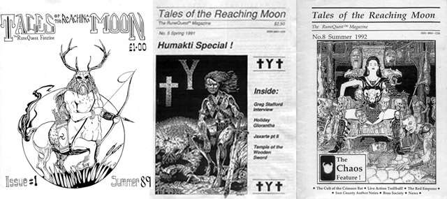 Over the years there have been a number of RuneQuest and Glorantha focused fanzines. One of the first was Pavic Tales, which had nine issues published in the late 80s. As it dwindled, the publication of Tales of the Reaching Moon got started and their authors published 20 issues between 1989 and 2000. They started by publishing two issues annually, and from 1995 onwards only one every year, but the quality and page number increased little by little. For example, starting from issue 12, covers became full-colour. The main editor was David Hall, who started out with a couple of friends, writing and laying out the fanzine. However, from the fourth issue onwards several die-hard fans joined the team like Rick Meints, who took care of layout, or Michael O'Brien, who edited, wrote, and distributed the fanzine in Australia. I wonder if they would have believed anyone telling them back then that they would one day become president and vice-president of Chaosium (!). In time, more contributors and subscribers joined the growing team.